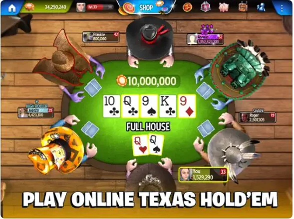 「ガバナー・オブ・ポーカー3(Governor of Poker 3)」は、スマホやPCから世界中のプレイヤーとリアルタイムで対戦できるオンラインポーカーゲームです。